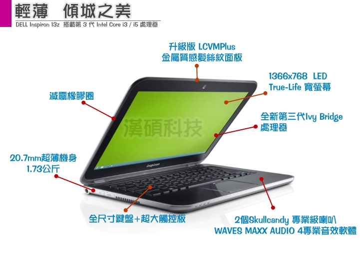 13.3 吋True Life高畫質寬螢幕 (1366 x 768) |